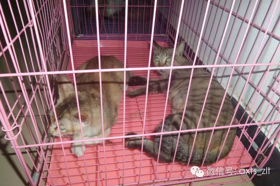 今天 ,第一批猫送来医院了,只抓到7只,其中5只母猫,2只公猫,