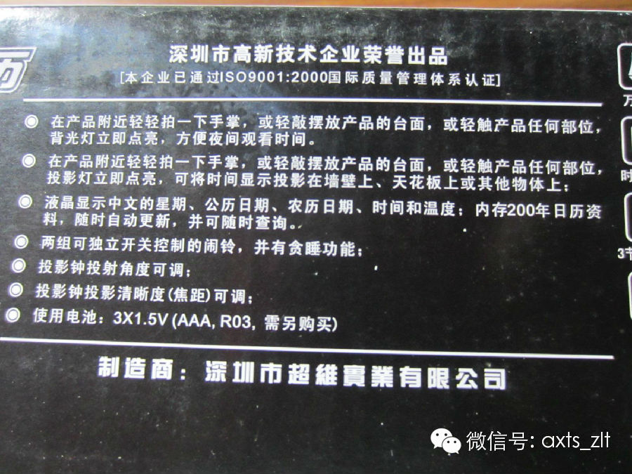 宝贝3:声控投影万年历,义卖价:60元(共5个)
